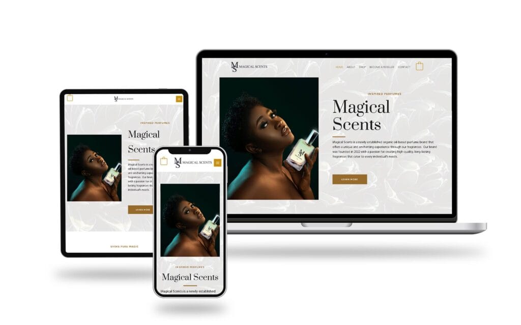 The Magical Scents logo intertwines the letters M and S to create a captivating emblem, symbolizing the brand's fusion of enchantment and aroma. The flowing design evokes the ethereal essence of fragrance, while the intertwined initials reflect elegance and harmony.